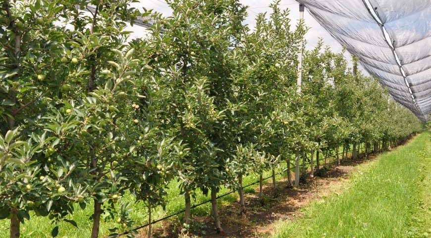 Сад интенсивного типа с защитой от града, сорт Голден Делишес