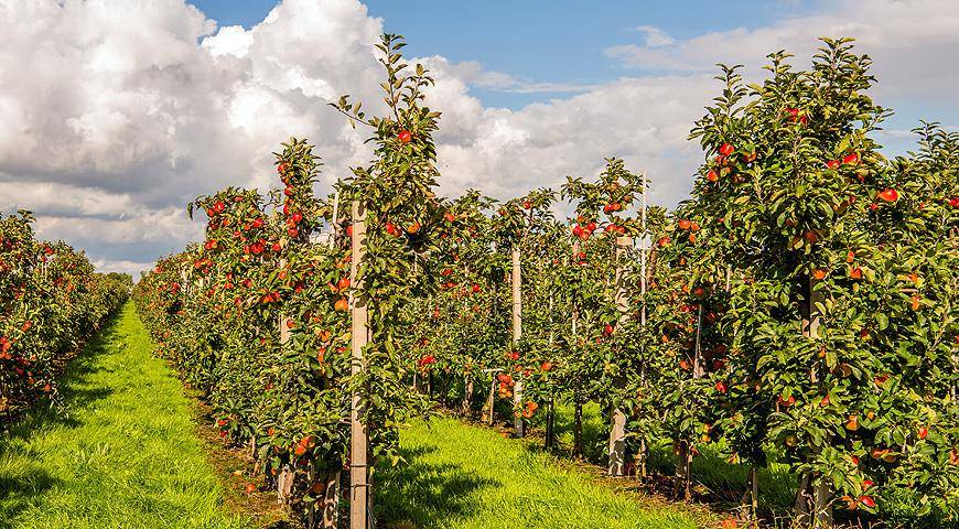 В садах интенсивного и суперинтенсивного типа высокий урожай (40–60 т/га) можно получить за короткий период времени.