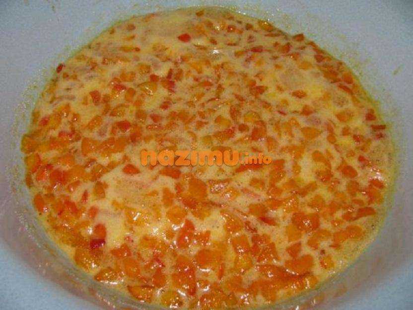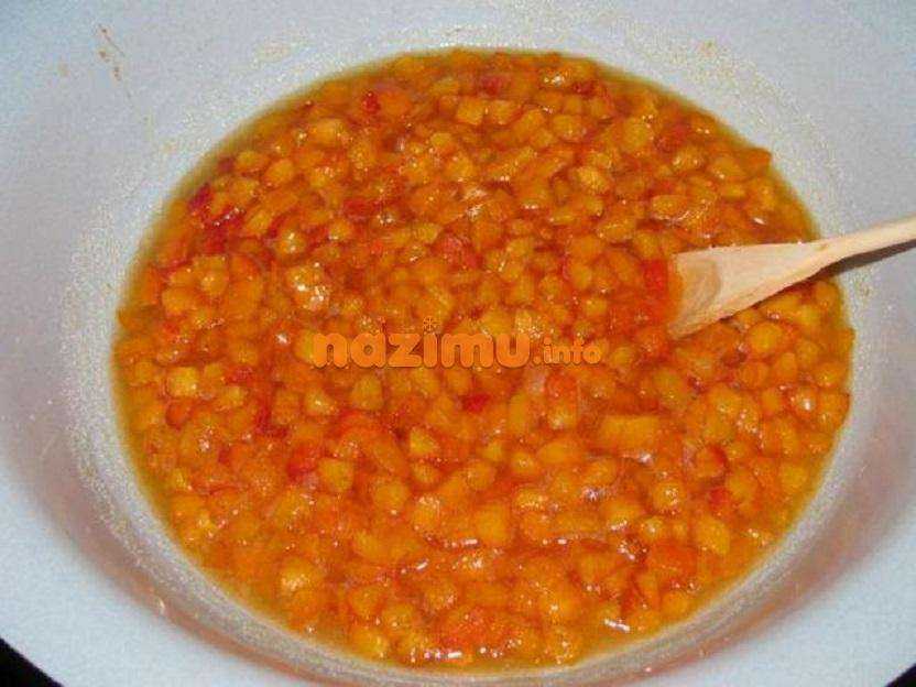 - Добавить мелко покрошенные абрикосы, лук, лимон (мякоть, сок и цедру) и проварить 10 минут.
