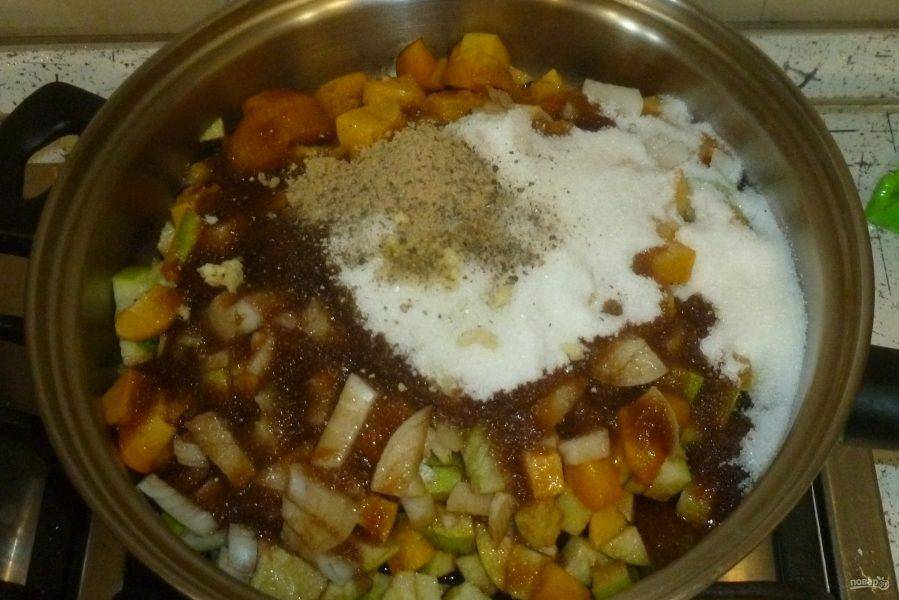- Добавить специи (все, кроме имбиря) с сахаром и уваривать 25 минут.