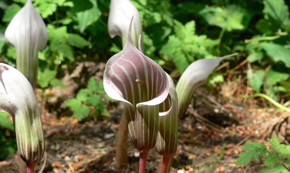 Считается, что род аризема (Arisaema) насчитывает более 100 видов, большинство из которых обитают в субтропиках и тропиках Азии. Не менее 6-7 из них можно культивировать у нас в палисаднике. Самой неприхотливой и доступной для россиянина является обитательница Приморского края – аризема амурская (Arisaema amurensis).