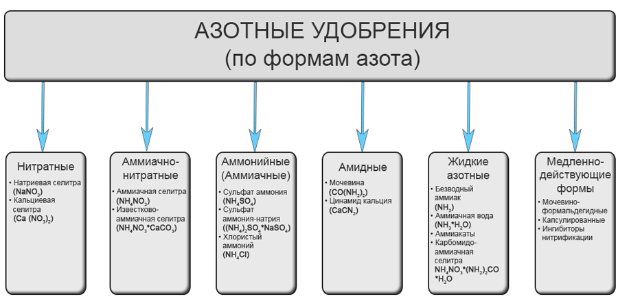 Выделяют 5 групп азотных минеральных удобрений (по формам азота):