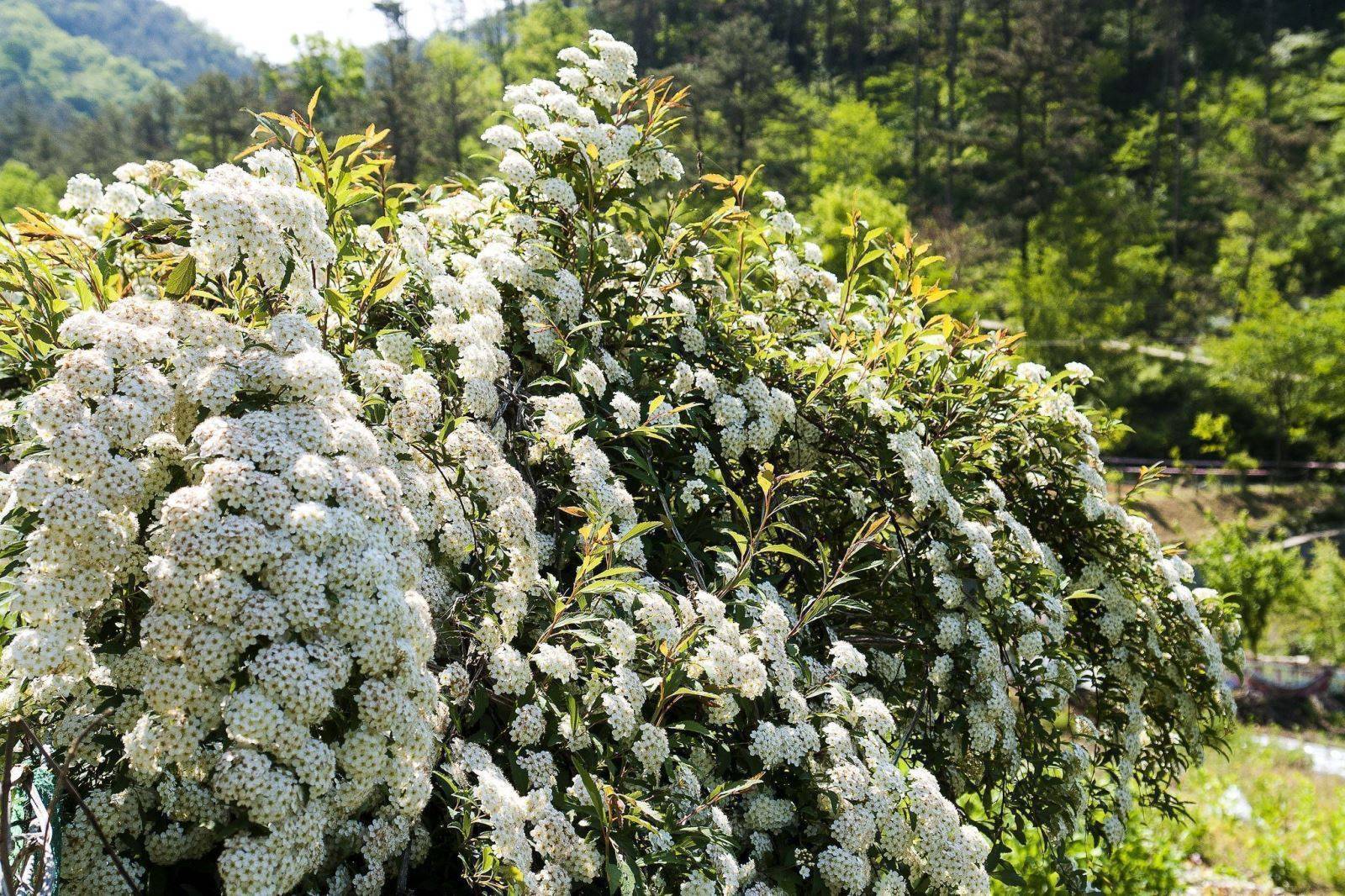 Кусты при тесной посадке образуют плотную живую изгородь. Одни сорта цветут один раз в конце весны, другие могут поочередно распускать свои бутоны в течение всего лета. Довольно крупные цветки у городчатой спиреи, обладающей ценным качеством – удерживать своими цепкими корнями оплывающие грунты на склонах.