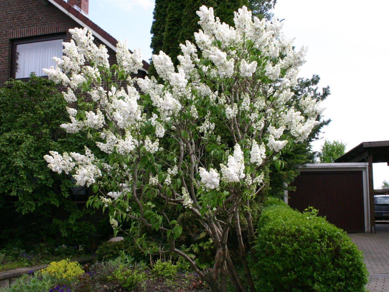 Для обильного цветения подойдут как освещенные, так и затемненные участки сада. Белая сирень начинает зацветать в конце мая, в течении 10 дней весь куст полностью покрывается белыми мелкими бутонами.