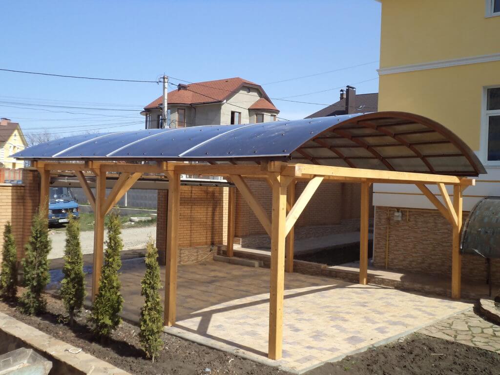 По отзывам строителей, такая крытая конструкция будет прочной и прослужит не один год. Для монтажа каркаса следует использовать металлические трубы, уголки.