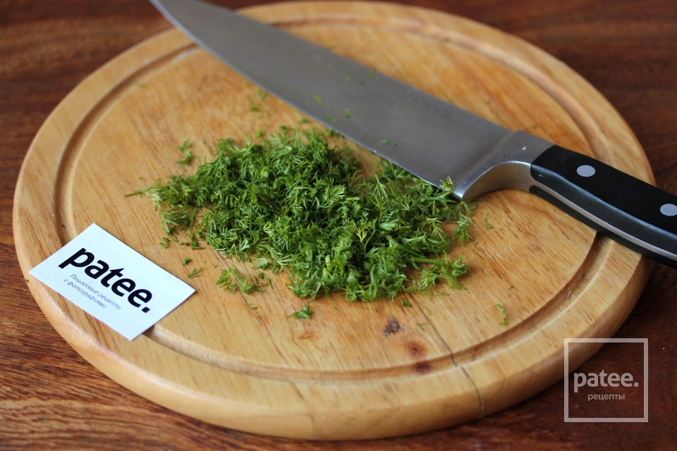 Свежий укроп также промываем и просушиваем, обрезаем жёсткие стебли, а саму зелень измельчаем.