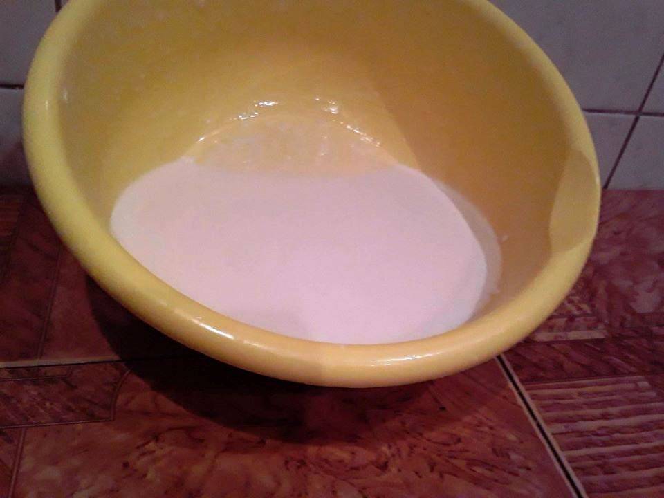 2. Наберите в ложку соду и, удерживая над тестом, погасите ее стаканом кипятка. Быстро перемешайте заварное тесто и отрегулируйте его консистенцию, добавляя воды или муки.