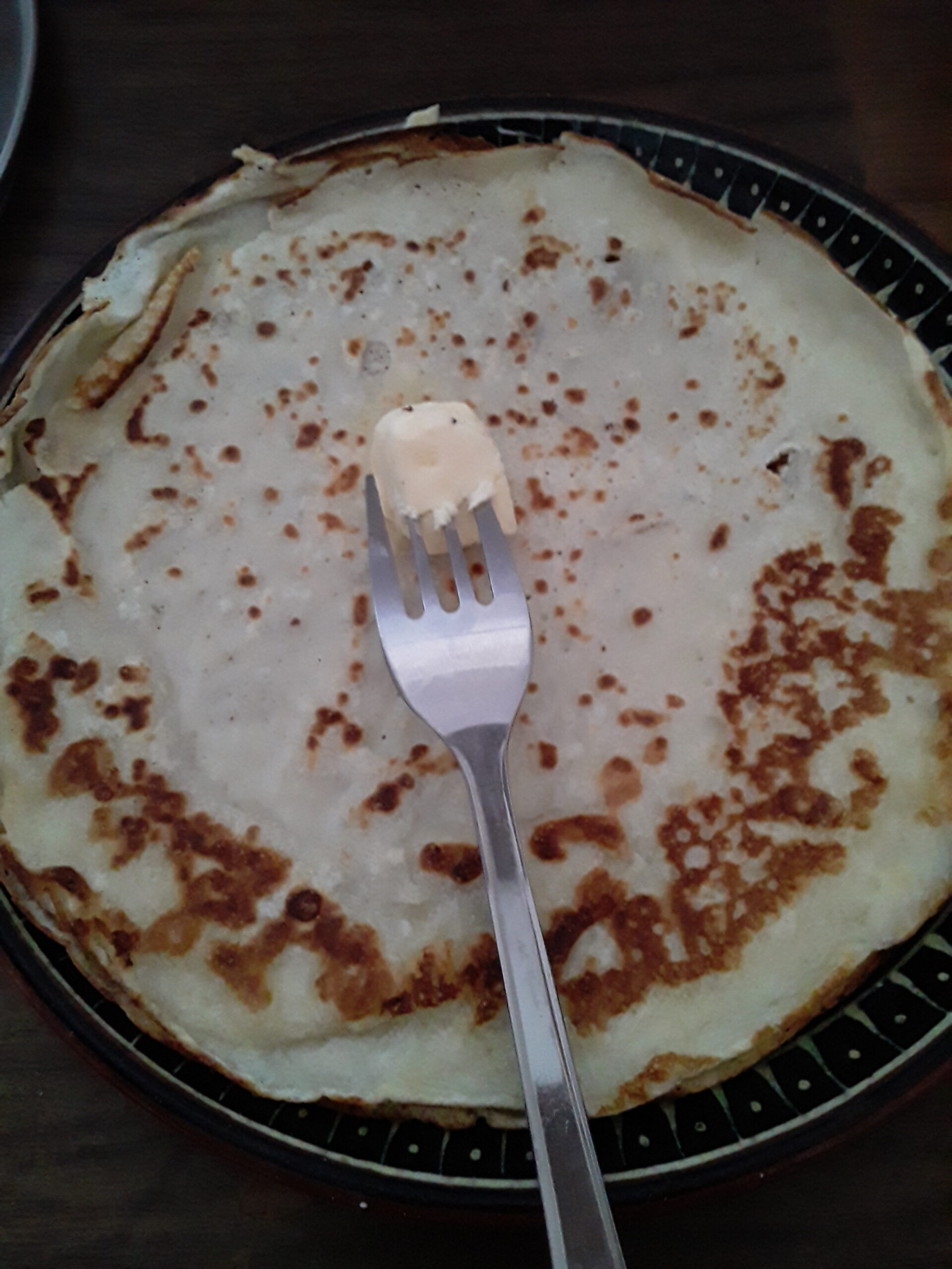 Подрумяненный на одной стороне блинчик, мы переворачиваем на другую.
