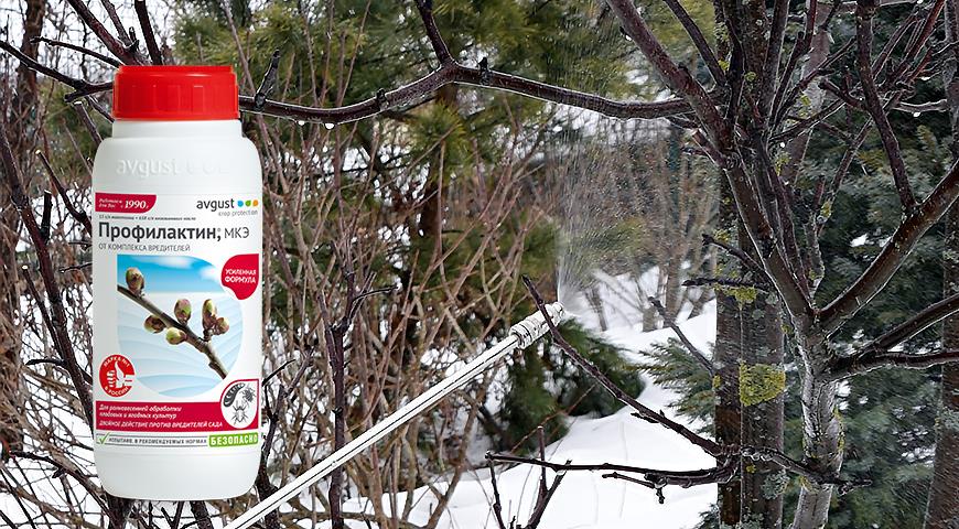 Опытные садоводы ежегодно проводят профилактическую обработку сада специальными препаратами. НО! Большинство инсектицидов работают только при стабильных положительных температурах от + 10 °С и часто бывают просто бесполезны при неустойчивой весенней погоде, когда температура воздуха колеблется от нуля до + 10 °С. Что же делать? Не опрыскивать сад? Конечно, нет. Используйте препарат Профилактин, который специально разработан для ранневесеннего применения и активен уже при температуре от + 4 °С. В его состав входят минеральное масло и активный компонент против вредителей. Покрывая стволы и ветки защитной пленкой, Профилактин лишает вредителей возможности дышать, а действующее вещество препарата не оставляет насекомым шансов на выживание.