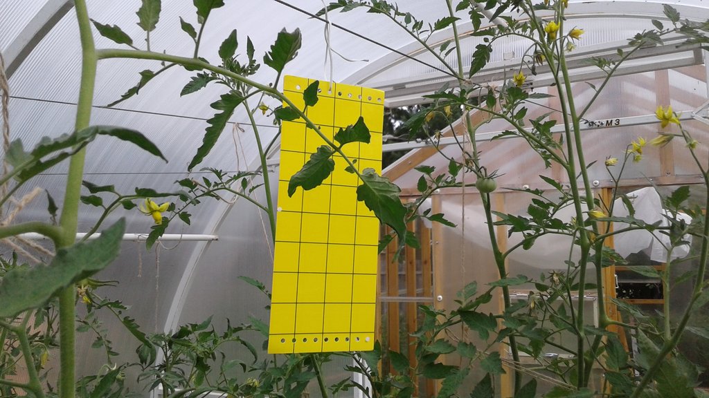 Ловушки для белокрылки надо развешивать выше самих растений Фото: Рудольф Грашин
