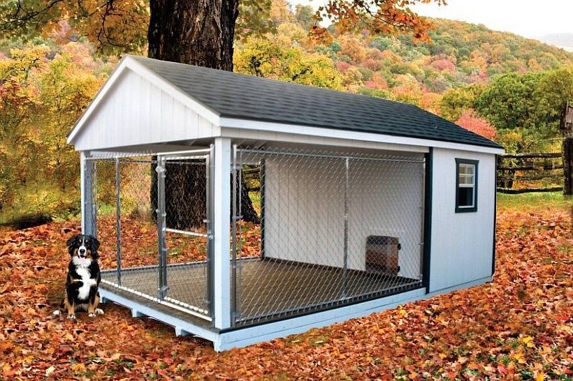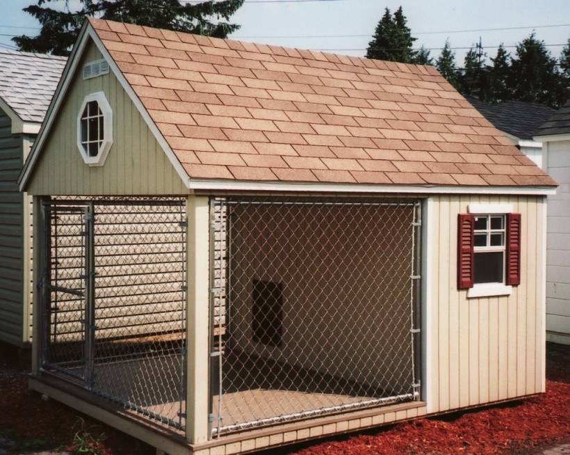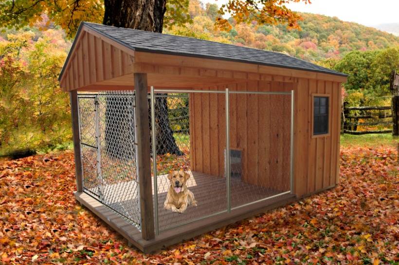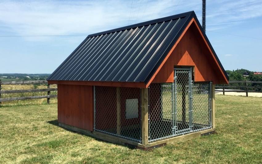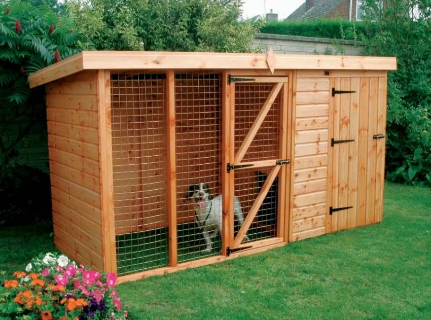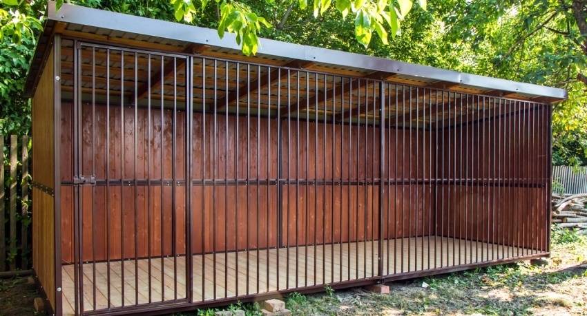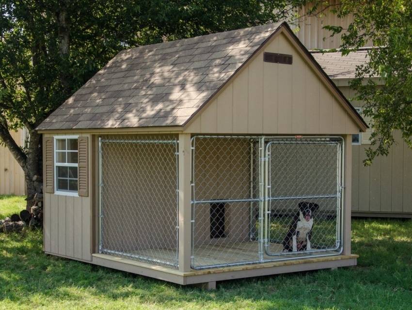 Любой вольер для собаки должен иметь хотя бы одну «глухую» стену, чтобы псу было комфортно и безопасно внутри