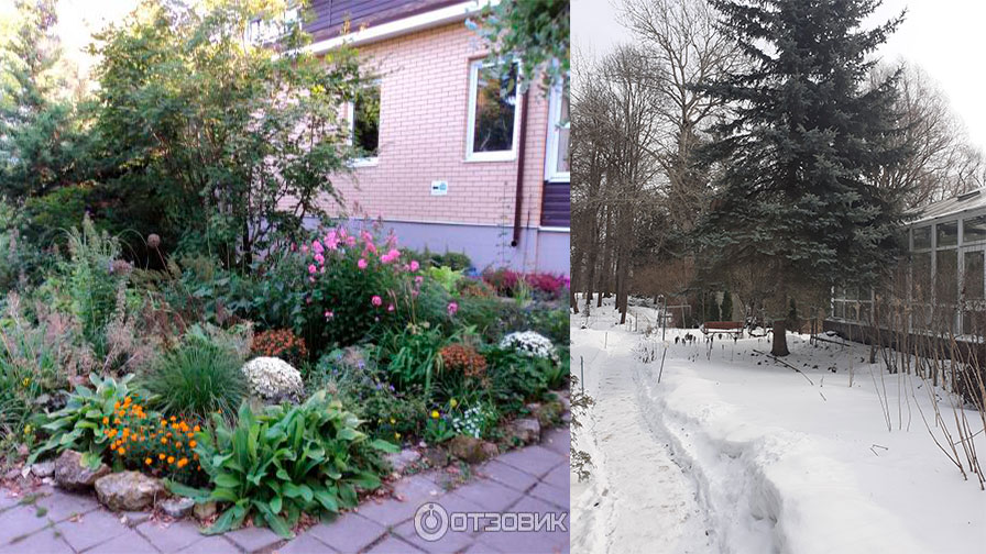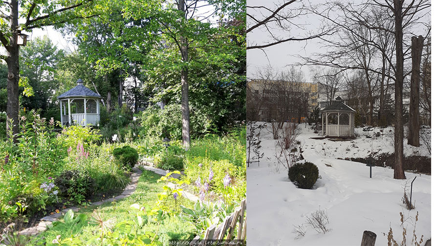 Все очень компактно собрано с вкраплением декоров и садовой мебели.