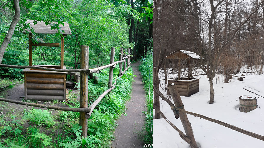 На пути вам встретится колодец, выполненный в старинных русских традициях. Обязательно киньте по традиции в него монетку
