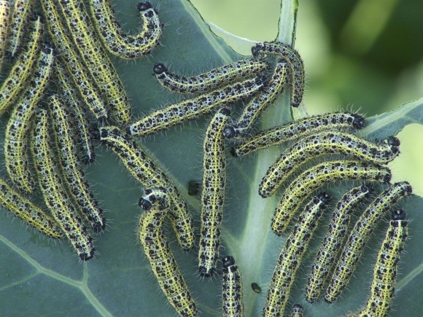 Капусту поедают капустная муха, тля, белокрылка, личинки бабочек, крестоцветная блошка, крестоцветный клоп, слизни, моль, совка, трипсы. Исходя из конкретного вредителя и размера поражения, проводится обработка, принимаются «меры экстренной помощи».