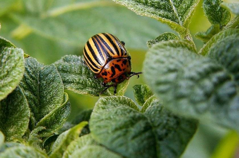 Наиболее опасным вредителем рассматриваемой культуры является колорадский жук. Его скопления за короткий период способны истребить не только грядки, но и целые поля картофельной культуры. Взрослые особи колорадского жука могут зимовать в почве. С первыми солнечными лучами они выходят наружу. В результате посадки подвергаются массовой вредоносной деятельности жука.