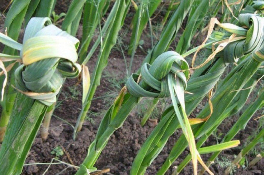 Важно!При неправильном завязывании луковичную культуру можно испортить, лишив себя урожая. При перекручивании чесночных листьев в них нарушается движения сока, так как сосуды, по которым проходят питательные вещества, оказываются повреждёнными, но без нарушения целостности самого листа
