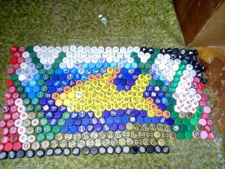 Этапы создания мозаики из крышек