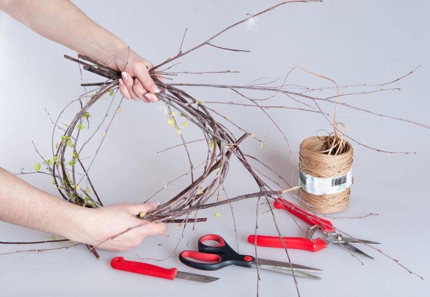 - Далее ветки подгоняются под размеры будущей рамы;