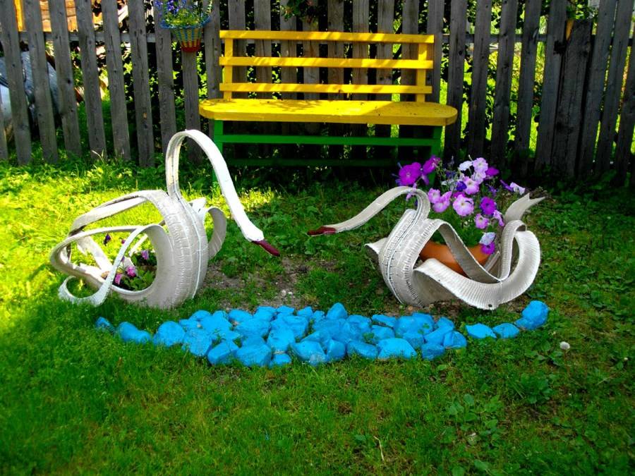 При создании декора для приусадебного участка собственными руками, вы также сможете избавиться от множества ненужных вещей. Ведь много тех предметов, которые вы давно не используете, превратятся в оригинальный садовый декор.