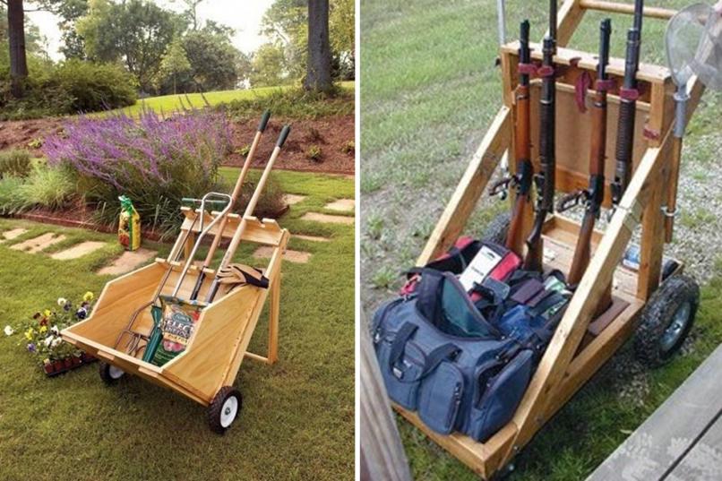На тачке для инструмента можно перевозить хоть ружья, хоть лопаты. Конструкция тележки при этом примерно одинаковая.