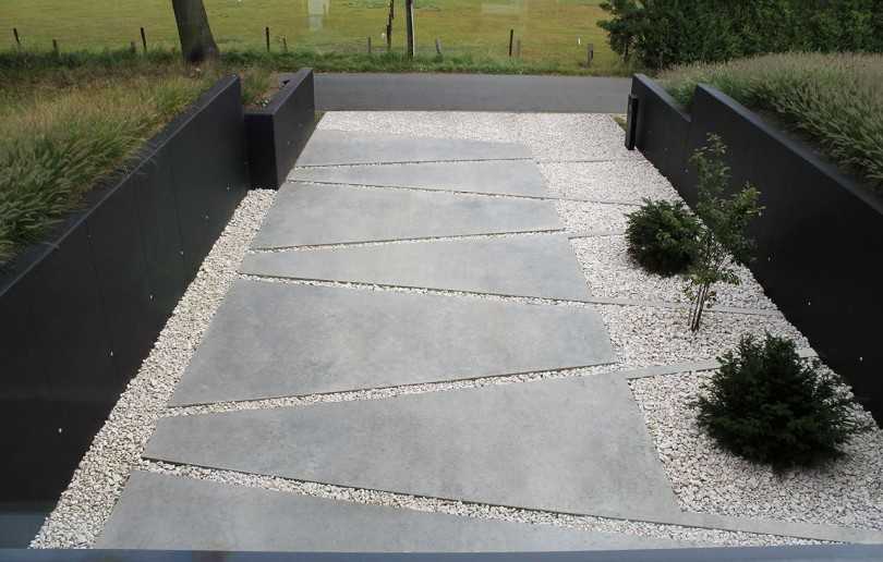 Красивая дорожка из плит и контрастной засыпки из мелкого щебня