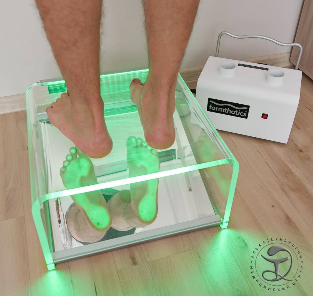 В медицинском центре «АЛЬФА ТЕХНОЛОГИИ» осуществляется изготовление и подбор индивидуальных ортопедических стелек Formthotics. Для этого врач-ортопед с помощью специального прибора – плантоскопа – исследует состояние тканей стоп, выявляя возможные деформации их продольного и поперечного сводов.