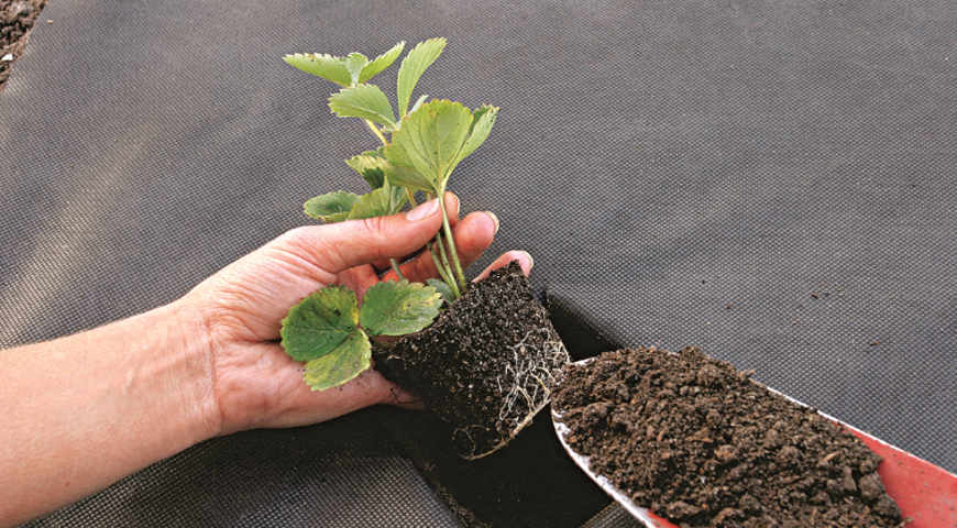 При посадке рукой раздвигают края тканевого разреза, корни помещают в лунку вертикально (загибаться они не должны), обжимают почвой. Сердечко при этом слегка возвышается над уровнем земли. Растения поливают непосредственно в отверстия, чтобы земля заполнила все пустоты вокруг корешков. Точка роста остаётся открытой. Если она присыпана почвой, то может загнить и погибнуть.