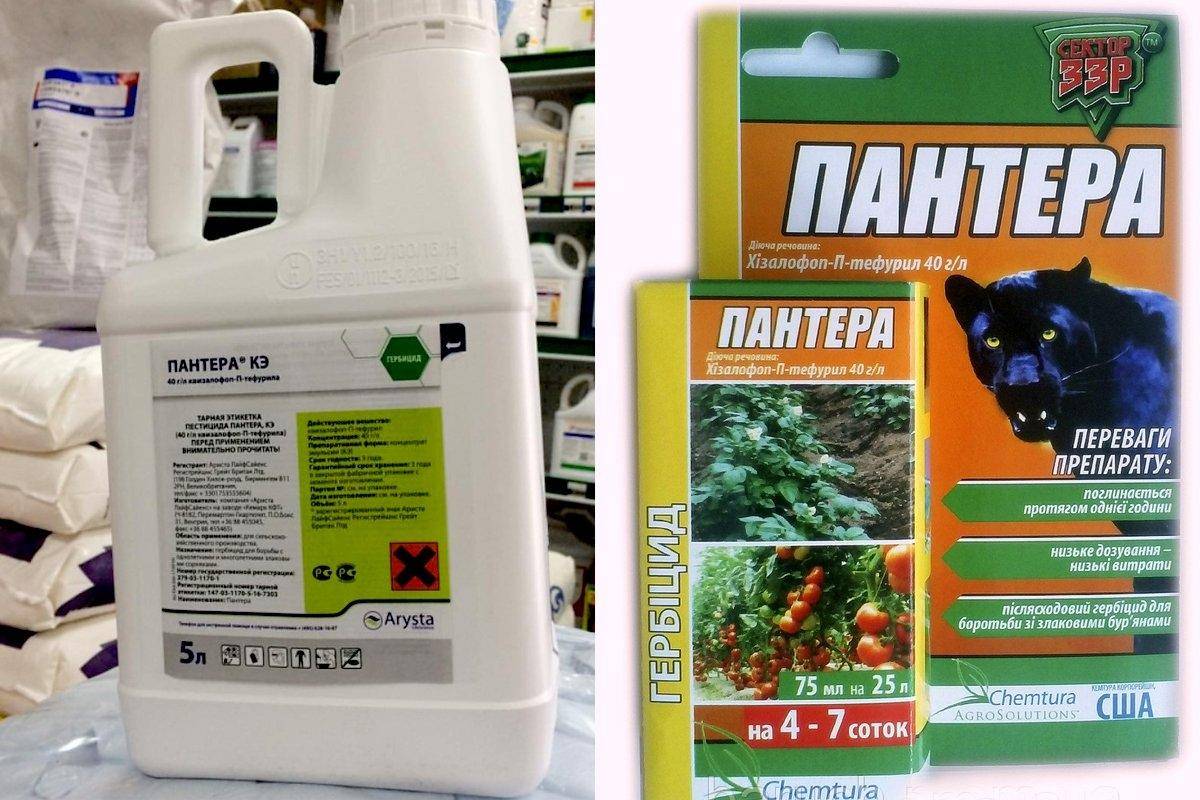 Гербицид избирательного действия «Пантера» используется для защиты культурных растений от сорняков. В составе этого средства есть активное вещество под названием квизалофоп-П-тефурил. Препаративная форма — концентрат эмульсии (масляное вещество). Выпускается в пластиковых бутылках объемом 100, 250, 1 000 мл или в канистрах на 5 литров.