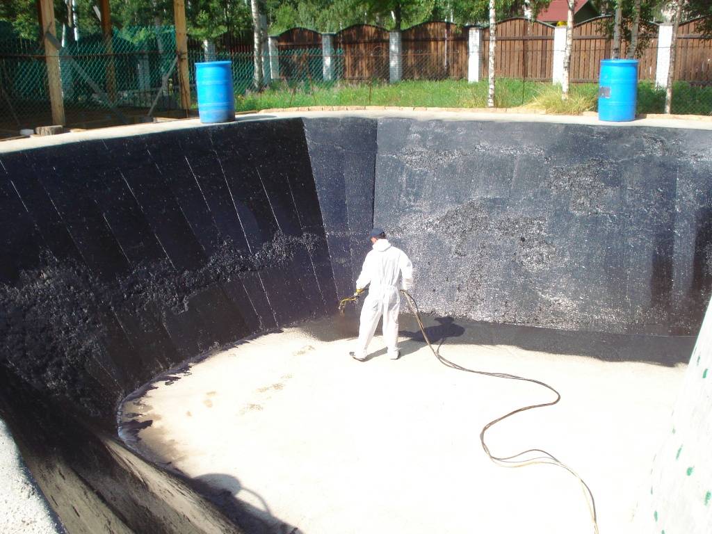Это самый простой, но очень эффективный способ гидроизолировать внешнюю часть бассейна. Конечно, наружную часть защищают от влаги лишь в случаях с открытыми конструкциями.