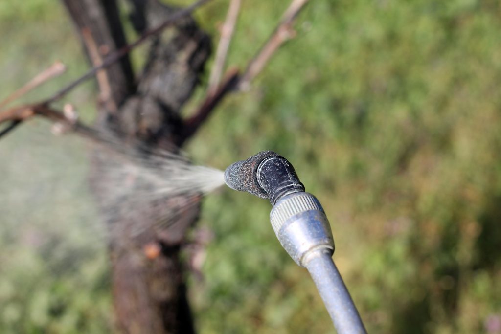В осенний период виноградники обрабатывают пестицидами после сбора винограда и закрытия всех почек. Процедуру проводят до обрезки, чтобы запастись черенками на весеннюю посадку. Или после укорачивания лозы, для экономии на препаратах.