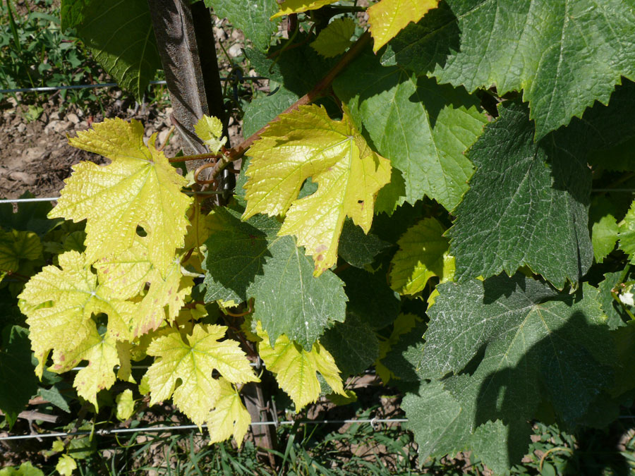- нарушение усвоения железа из-за защелачивания грунта – такая причина реже характерна для европейских сортов винограда;