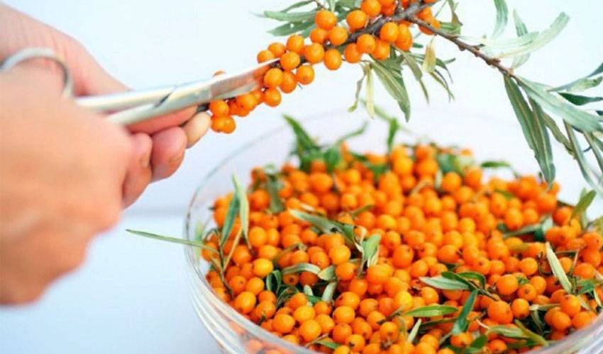 Чтобы облепиха не расквасились при сборе, можно сорвать веточку с облепленными ягодами. У целых плодов срок хранения в свежем виде значительно повышается.