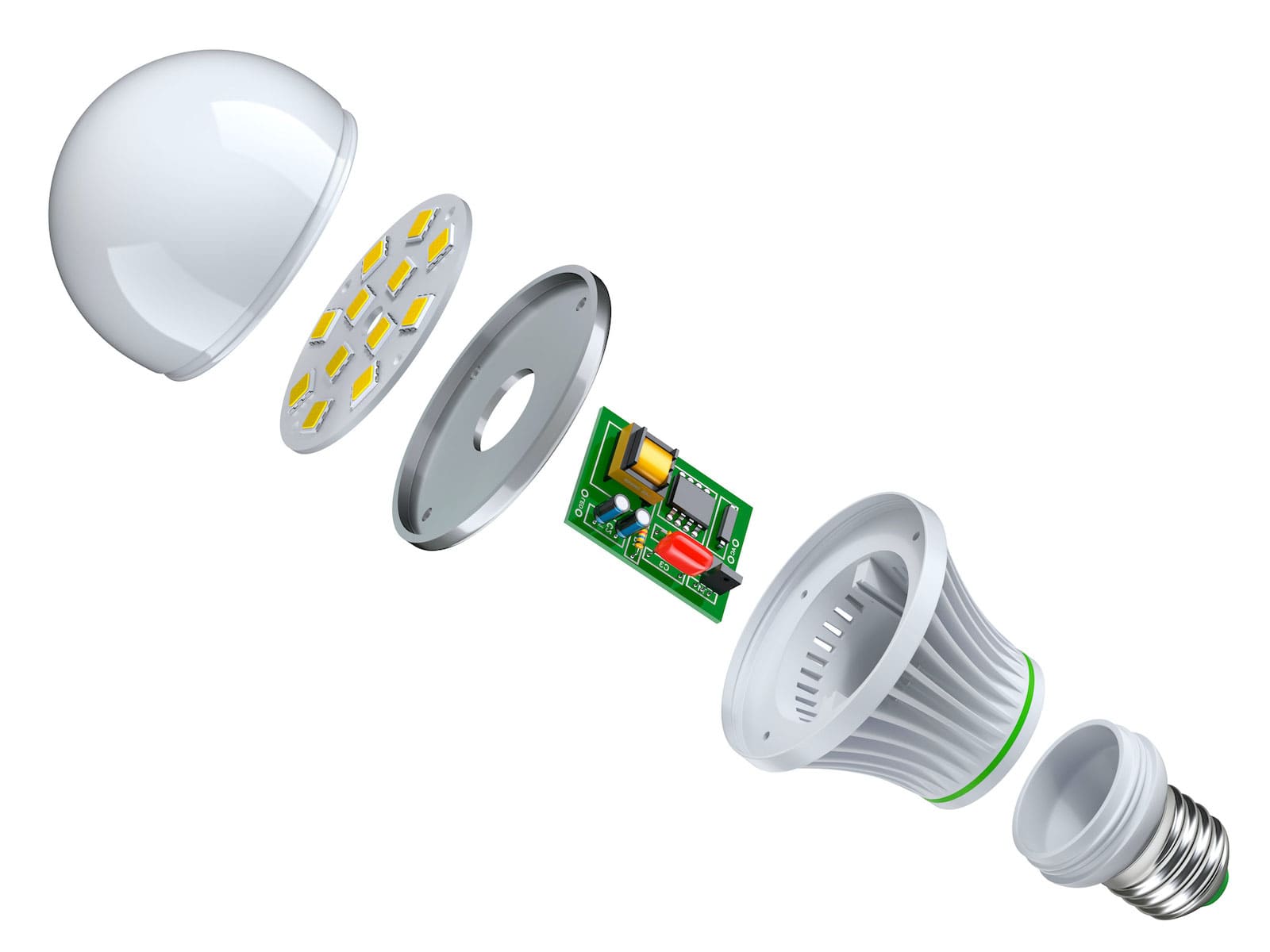 На картинке показано из чего состоит светодиодная лампочка