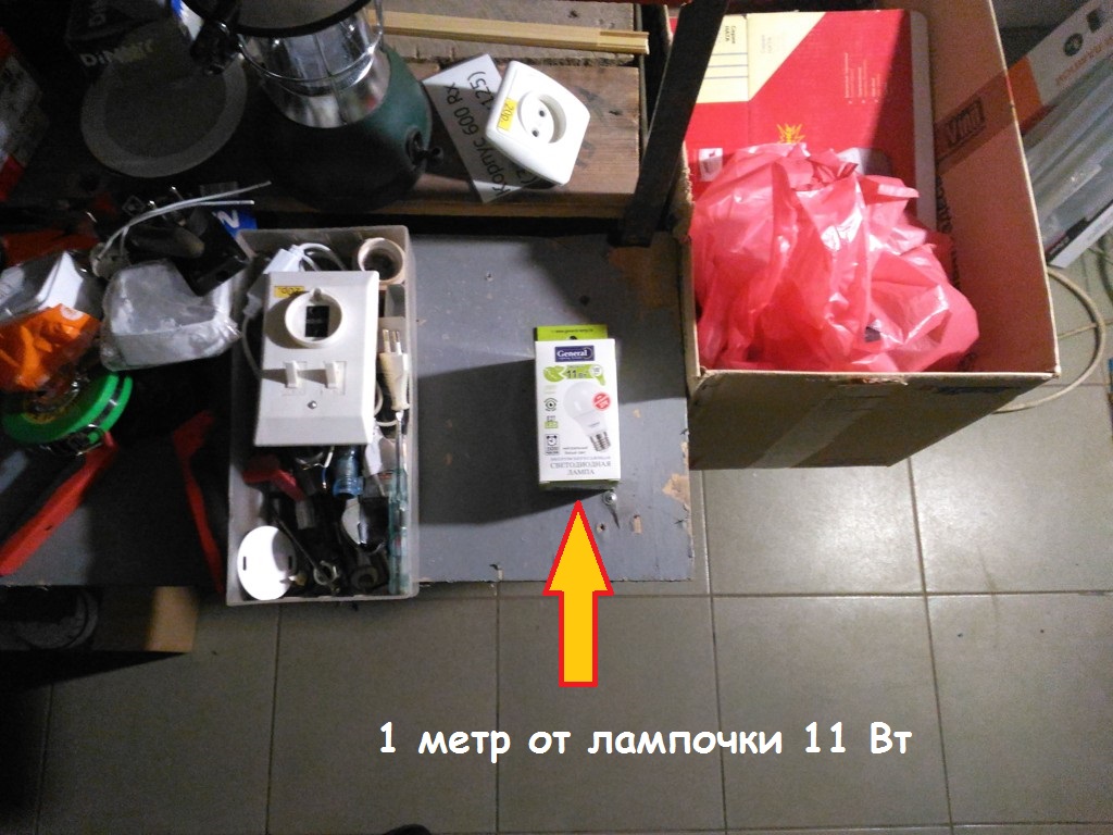 Для сравнения бытовая светодиодная лампа 11 Вт (4000К) на расстоянии 1 м дает 150 Люкс. Это норма освещенности для жилых комнат и кухонь. Для наглядности можете проверить сами. У меня получилось вот такое фото: