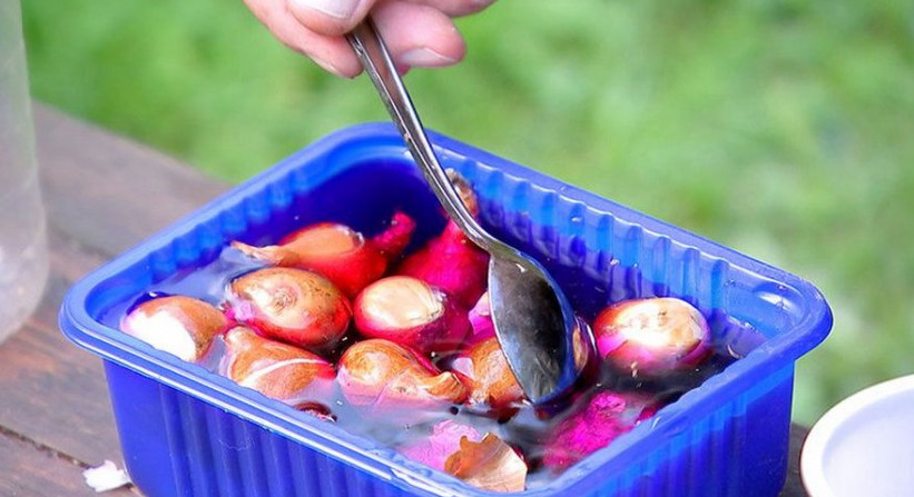 Если растения полностью здоровы, достаточно использовать слабый раствор марганца для их обработки перед посадкой. При выявлении следов гниения или плесени это средство не поможет. Споры стоит стряхнуть влажной тряпкой, а затем обработать луковку доступным фунгицидом. Её откладывают отдельно и контролируют состояние до посадки.