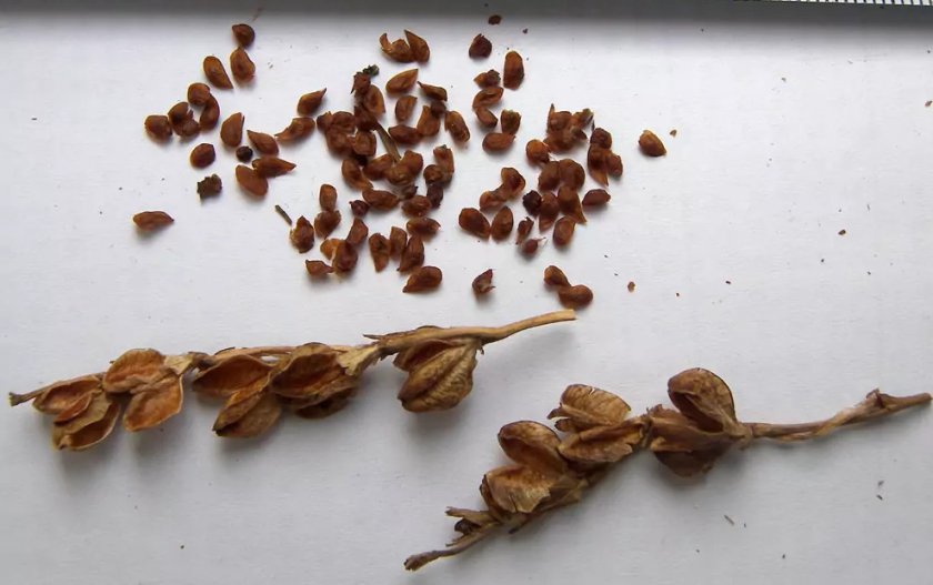 Семена похожи на небольшие плоские пластиночки коричневого цвета, размерами не более 2 мм. При внимательном рассмотрении пластинки можно разглядеть внутри, под оболочкой зародыш растения. Количество семян в семенной коробочке достигает 180-200 экземпляров. После сбора они достаточно хорошо сохраняются в комнатных условиях.