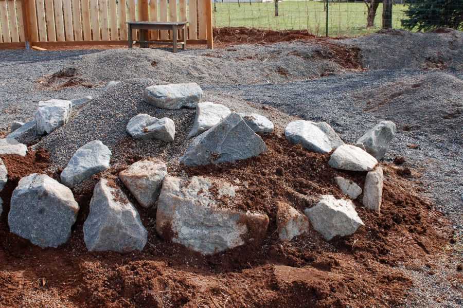 Для начала требуется определить место на участке, где будет располагаться горка. Рядом не должны расти многолетние кустарники и деревья, которые могут со временем затенить растения на горке. Открытое со всех сторон место, доступное для обзора изо всех уголков сада, должно быть сухим. Высокий уровень грунтовых вод неблагоприятно скажется на долговечности и прочности основания горки. Уровень грунтовых вод в таком случае требуется понизить с помощью специального дренажа.