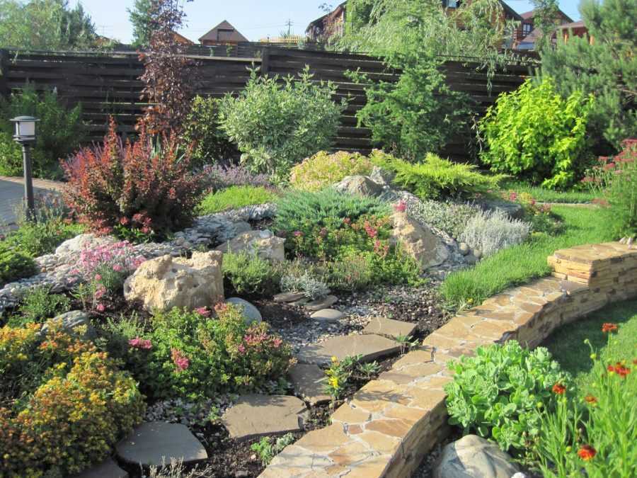 Соорудить каменистый садик на участке несложно, если придерживаться такой последовательности:
