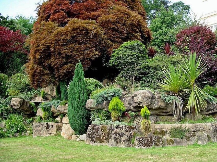 - Открытая местность. Размещают композицию так, чтобы можно было видеть горку из любой точки сада.