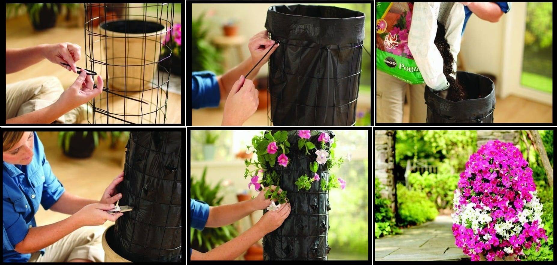 Формируют такие цветники из пластиковых труб, сеток, бутылок, ящиков, поддонов, горшков, мешков, автопокрышек. Перед выполнением работы ознакомьтесь с особенностями вертикальных композиций: