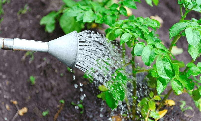 Чтобы получить достойный урожай, требуется 4-5 поливов за вегетационный период. Первое орошение делают после образования ботвы, когда она поднимается на 15 см над поверхностью. Второй раз вносят воду после формирования цветков. Третий полив приходится после цветения. В последний раз, вносить немного воды, полведра на кустик. В противном случае, повышается риск возникновения фитофтороза.