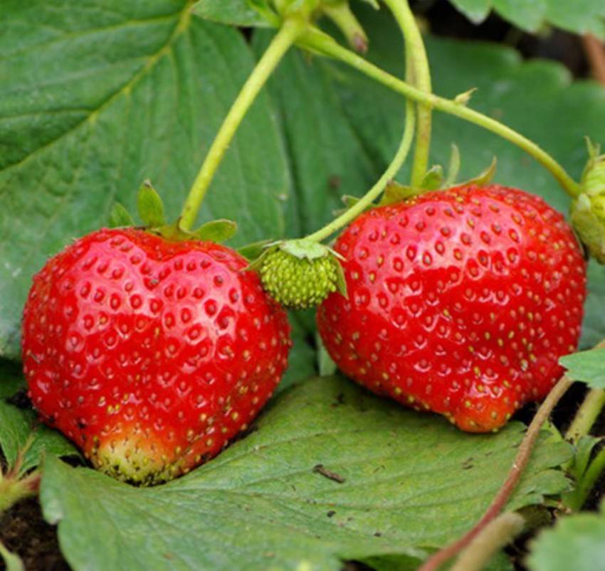 Плоды могут быть разной формы — чаще округлые, с широким основанием, бывают и удлинённые узко-конические. Ягоды Виктории одинаково хороши в свежем виде и для консервации.