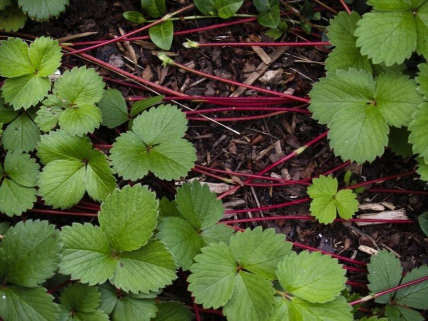 - Усов образует много, чтобы не истощить куст, требуется своевременное обрезание. Оставляют только усы на замещение.