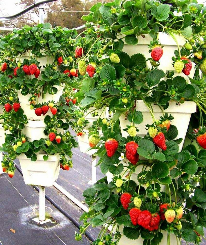 Вьющаяся клубника, если не придираться к терминам, это урожайная и очень декоративная разновидность любимой культуры, выращиваемая в кашпо, корзинах, горшках и на грядках