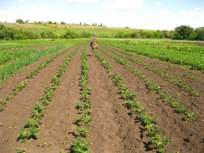 Рядовым способом можно посадить клубнику в несколько строк ‒ от одной до пяти в ленте.