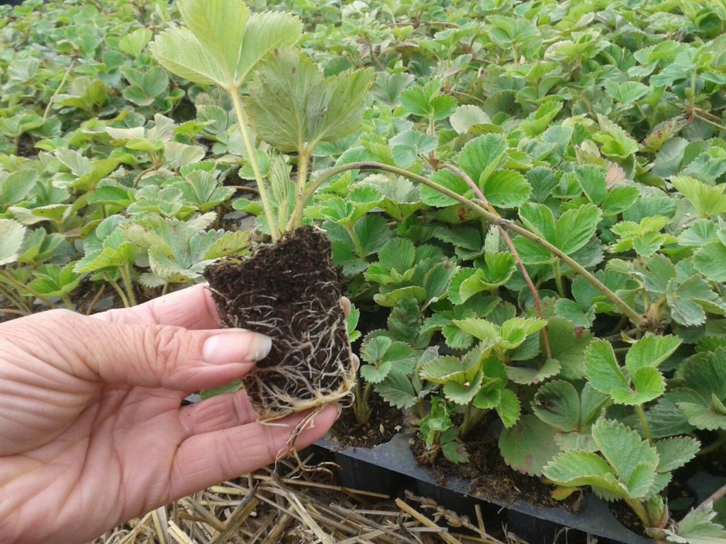Рассада клубники Фриго не имеет листьев, поэтому очень важно следить, чтобы розетка была над поверхностью почвы. При этом шейка корневая должна быть засыпана землей