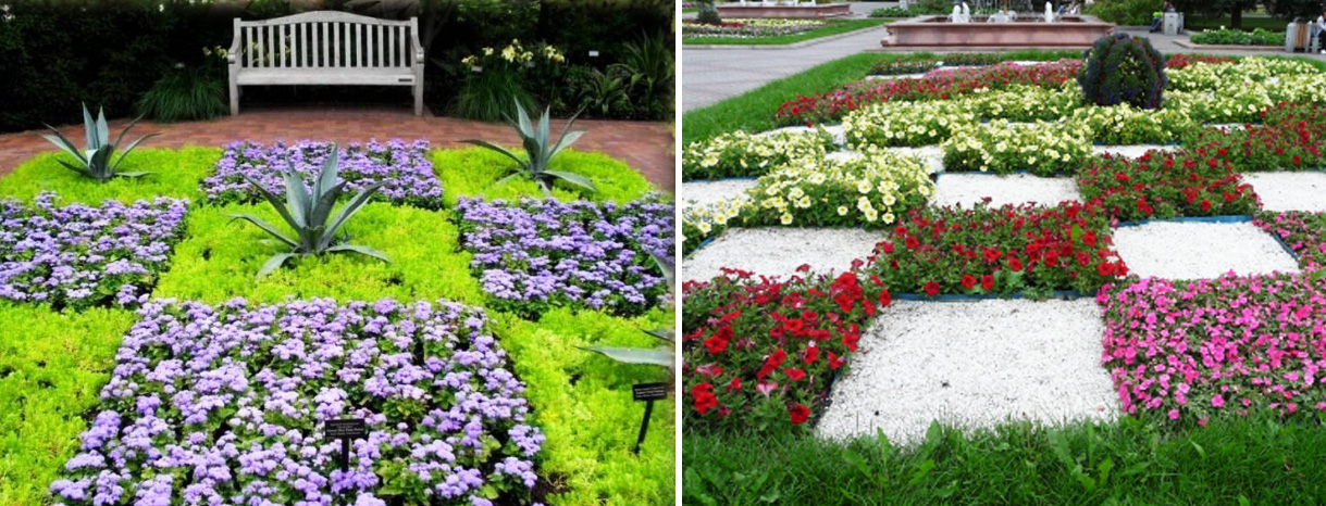 Нерегулярные — время цветения подобрано так, что цветение разных растений продолжается с весны до осени.
