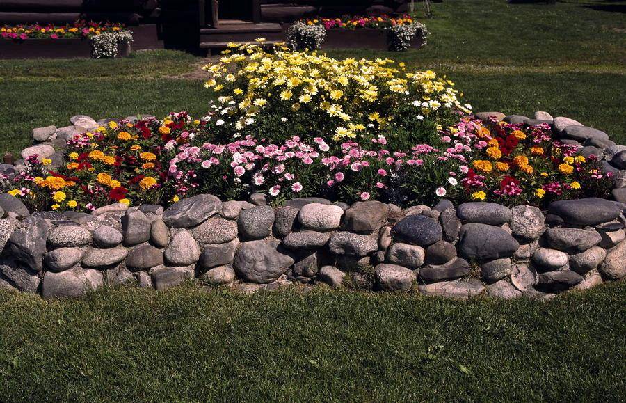 Создать в саду своими руками цветник из камней можно в разных формах. Это может быть: