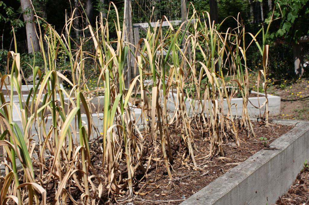 Отдельные дачники советуют приступать к уборке озимого чеснока уже в июне. К таким советам прислушиваться не стоит. В данном варианте уборка будет преждевременной, овощ не до конца вызреет и во время хранения чеснок станет повторно прорастать. Потратив на прорастание питательные вещества, луковицы чеснока начнут усыхать и портиться.