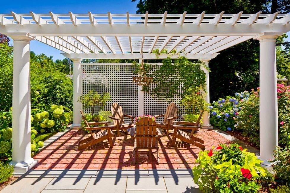 Даже самую простую беседку или деревянную арку можно оформить и освежить с помощью лиан. Для этих целей отлично подойдут клематис, плетистая роза, виноград девичий, декоративная фасоль и прочие плетущиеся растения.
